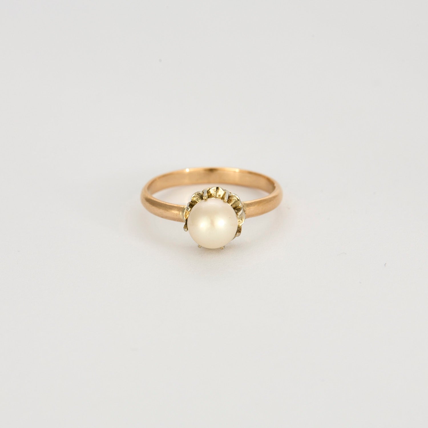 Bague style solitaire en or rose et or blanc 18 carats sertie d'une perle de 6,3mm.