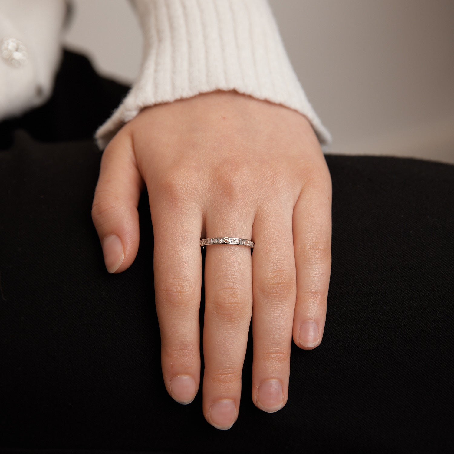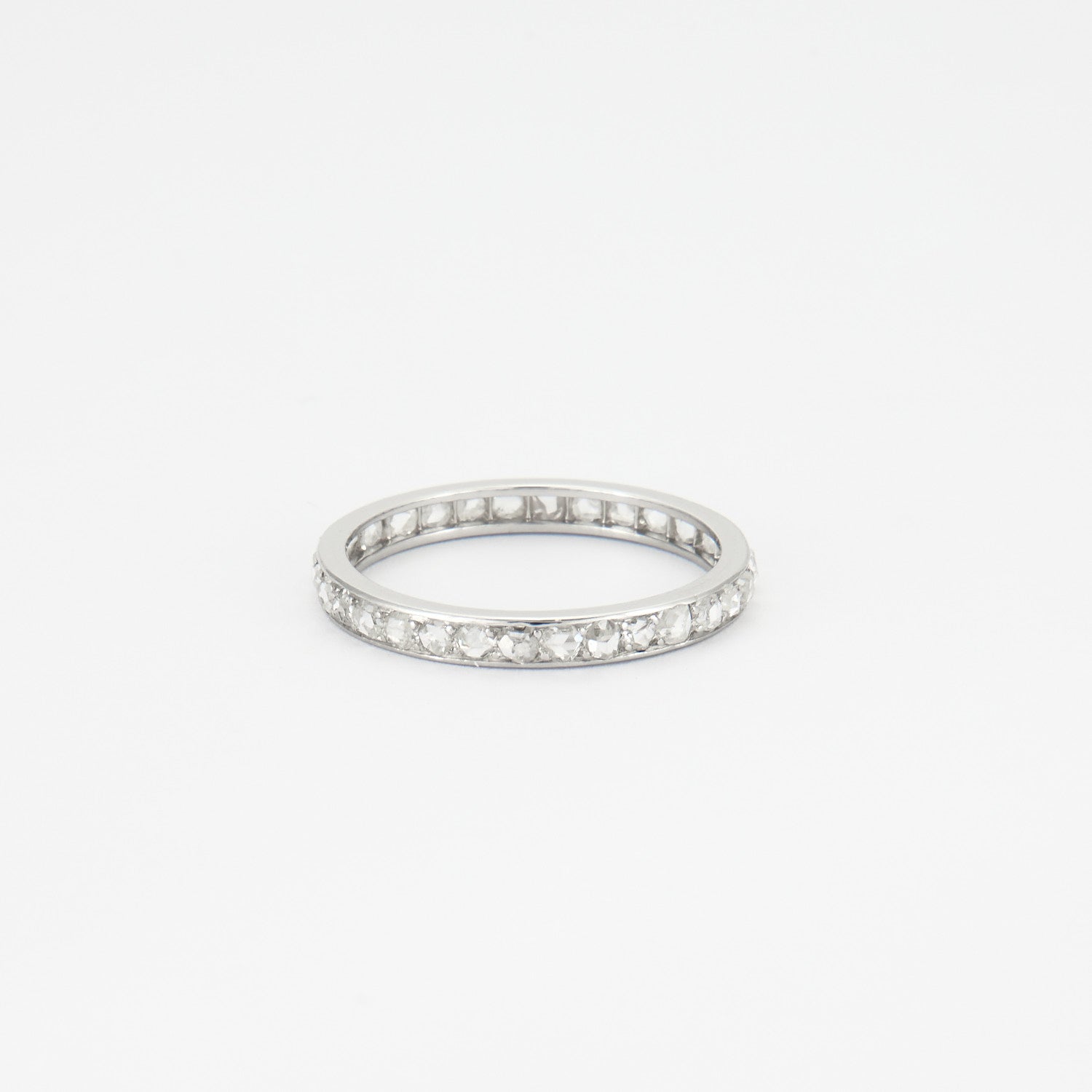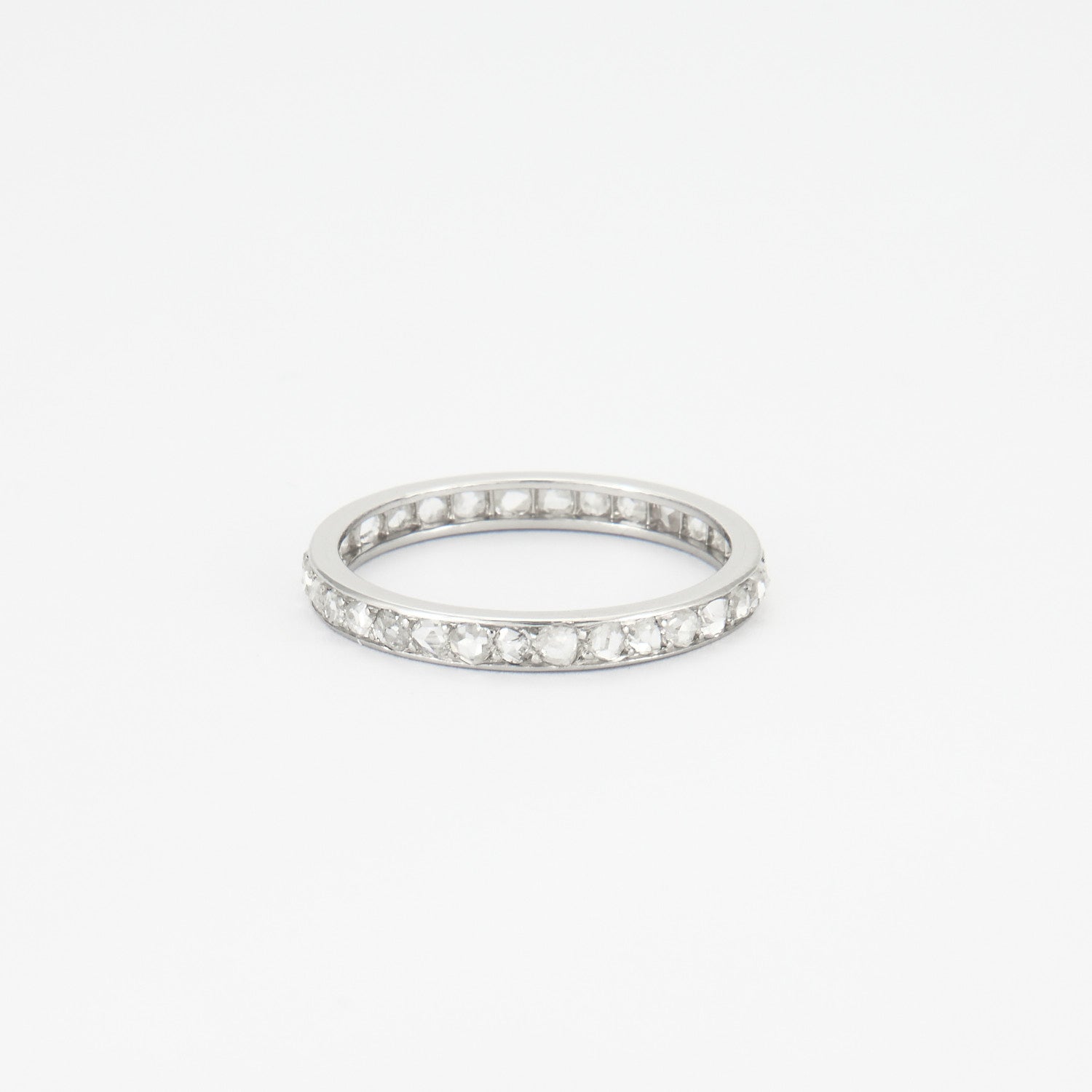Alliance sertie en tour complet de 32 diamants taille rose et montée sur platine.