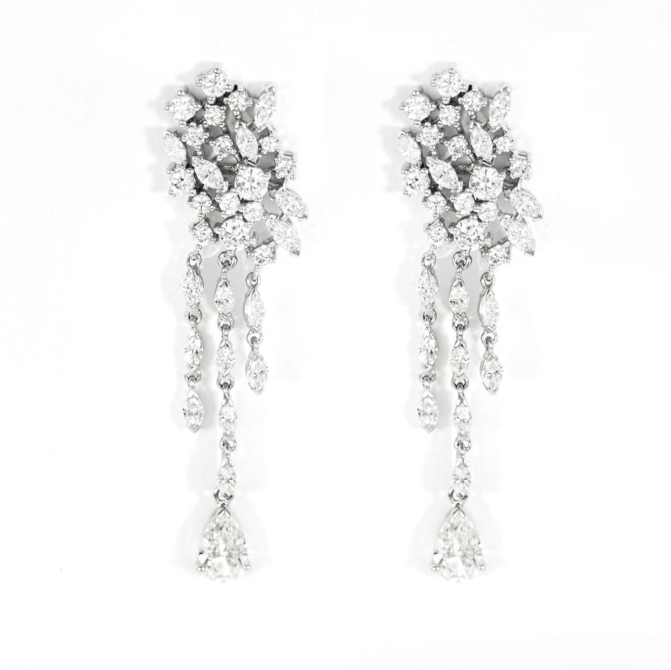 Boucles d'oreilles pendantes en or blanc pavées de diamants