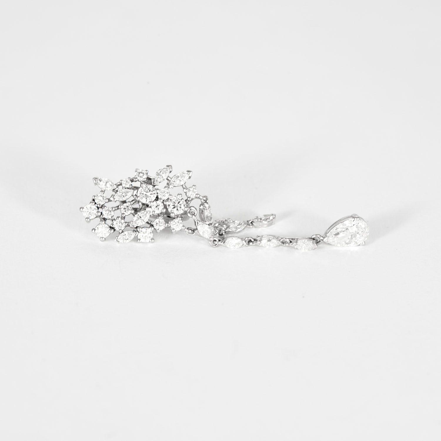 Sublime paire de boucles d'oreilles en or blanc 18 carats, serties de 30 diamants navettes, de 32 diamants ronds (tailles brillants) ainsi que 2 poires pendantes de 0,80 carat chacun certifié GIA G-VS1-2 qui peuvent se retirer des boucles pour un rendu moins long. Système raquette avec tiges.