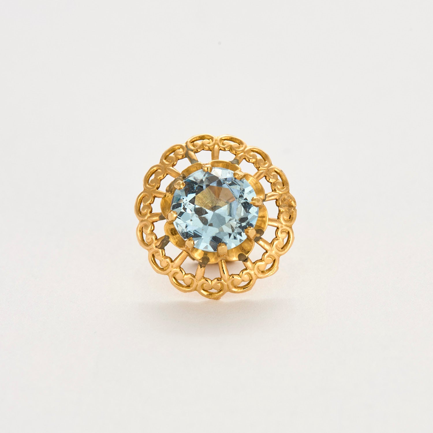Boucles d'oreilles en or jaune et Aigue-marine.