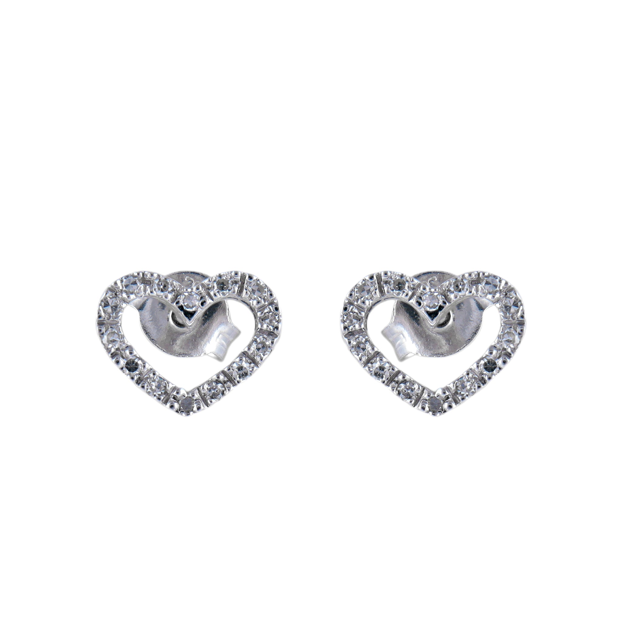 Une paire de boucles d'oreilles en forme de cœurs en or blanc 18 carats, sertie de 28 diamants F-G VS.
