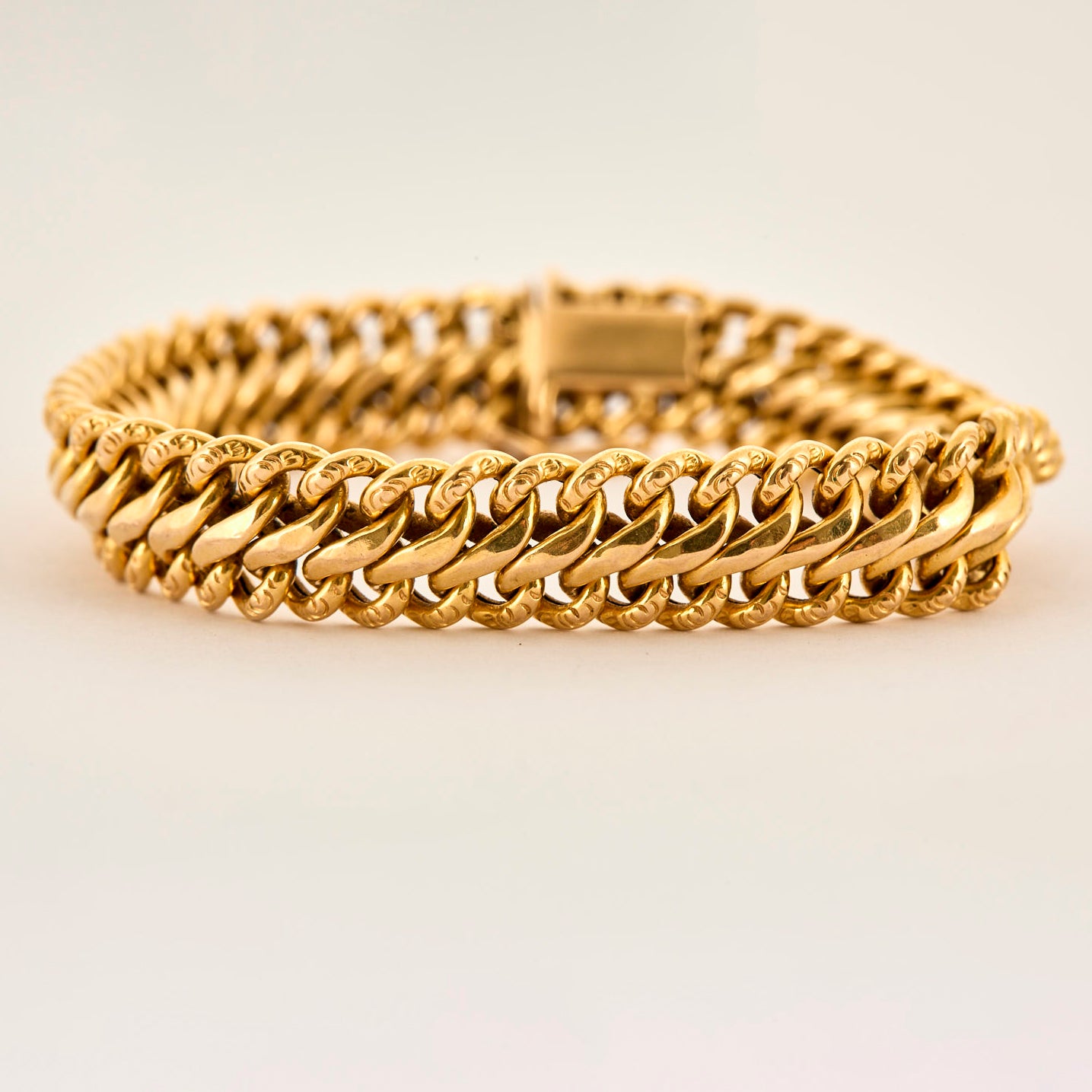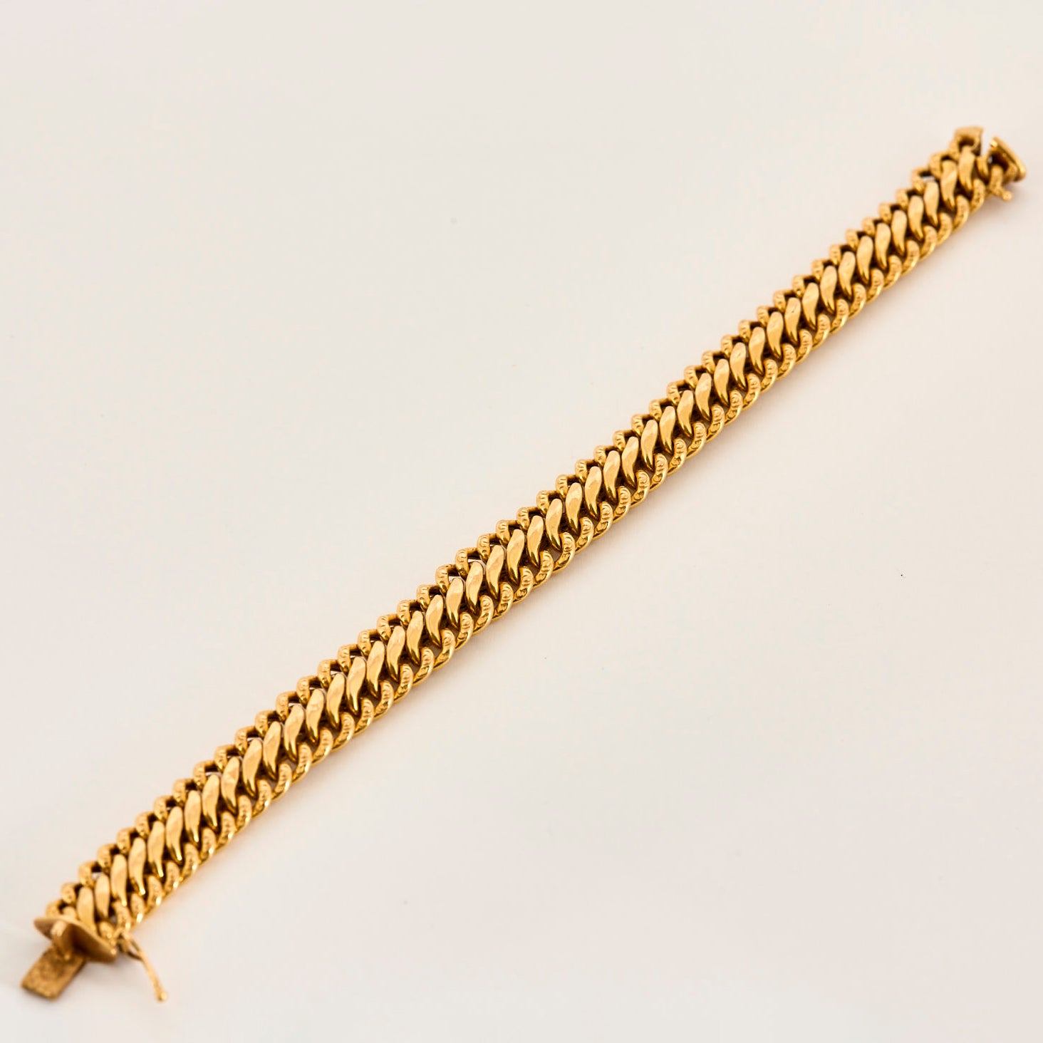 Bracelet ancien maille américaine en or jaune 18 carats avec huit de sécurité.