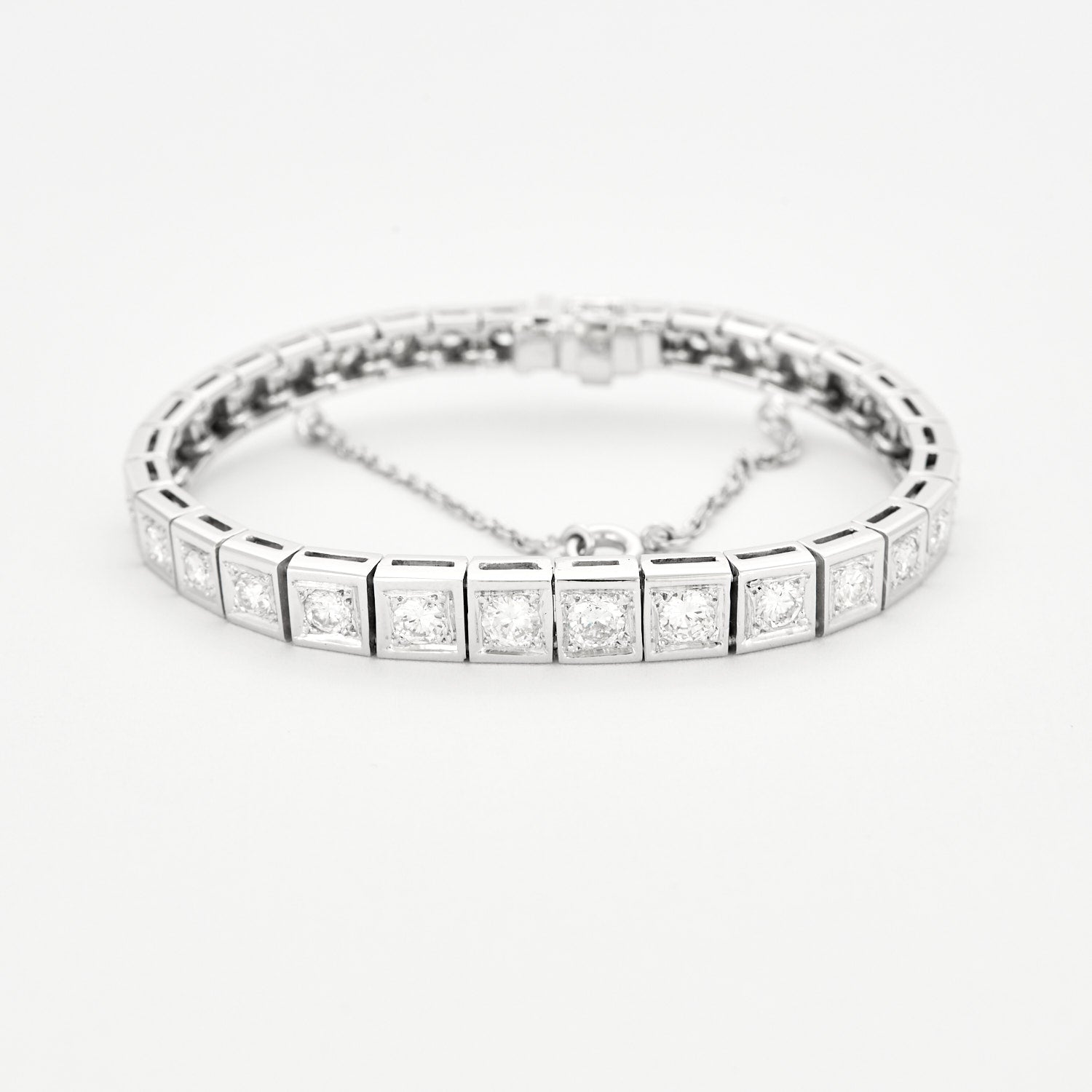 Sublime bracelet rivière époque "art déco" en platine et serti de 32 diamants en chute. Fermoir à cliquet avec sécurité en dessous et chaine de sureté.