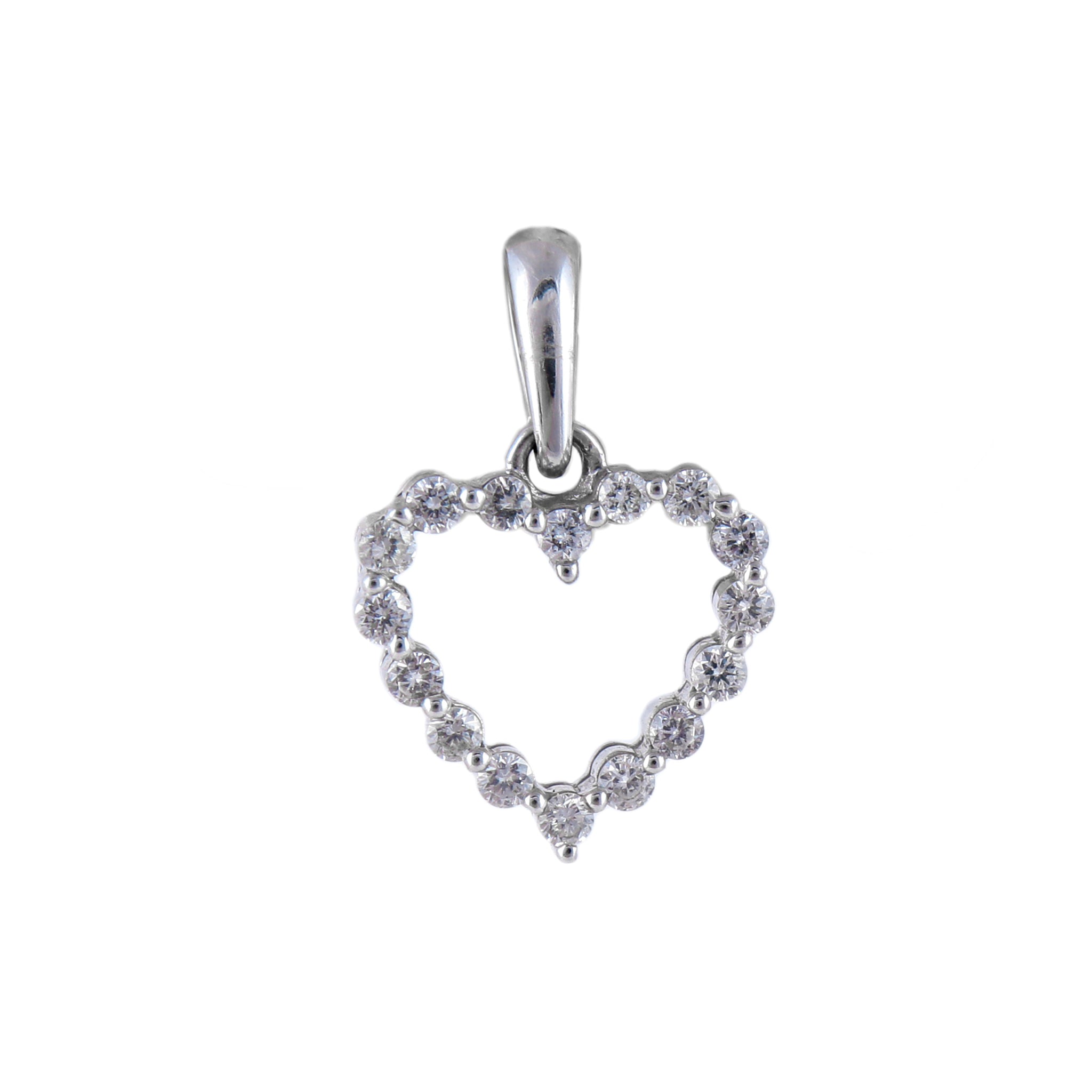 Pendentif en forme de cœur en or blanc 18 carats serti de 16 diamants F-G VS.