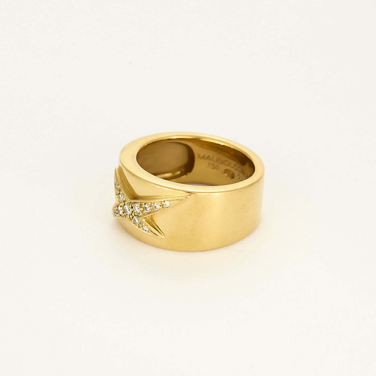 Bague Mauboussin model "Etoile divine" fabrication française (les dernières belles années de la marque), toujours d'actualité en or Jaune 18K et sertie de 11 diamants. Référence : R6505