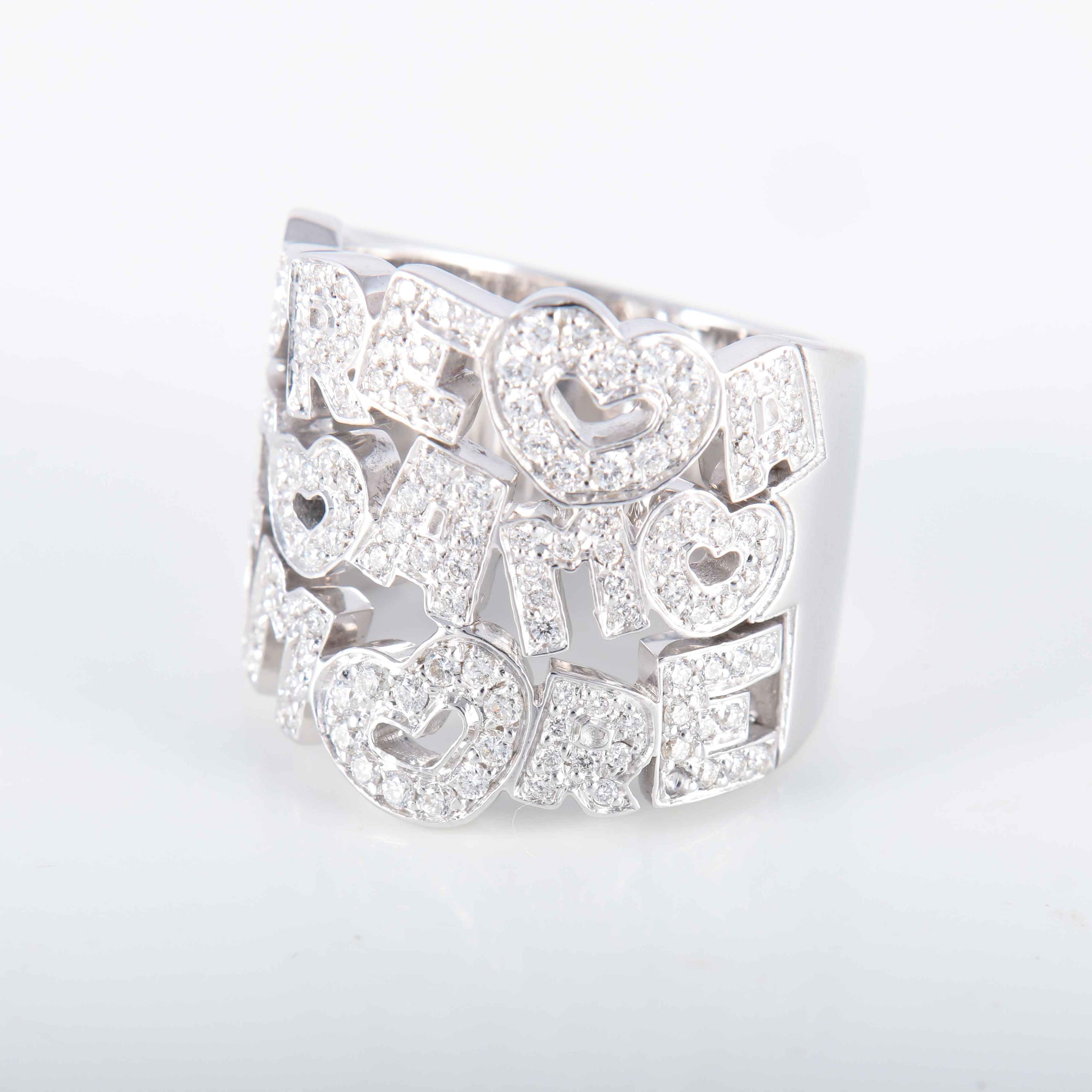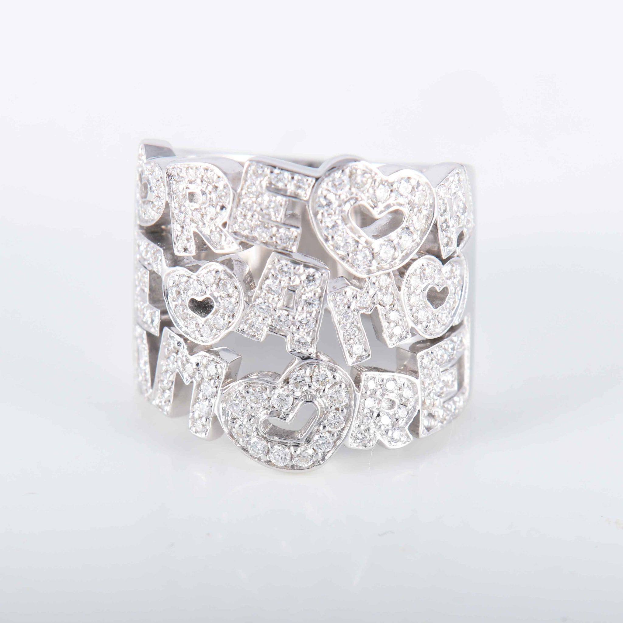 Bague « Pasquale Bruni » collection "Amore", en or blanc 18 carats, sertie de diamants, avec motifs ajourés en forme de coeurs et de lettres.